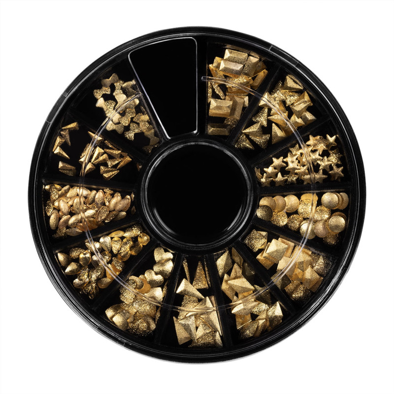 El carrusel con adornos 04 de NEONAIL es una colección de strass dorados para nailart de doce formas diferentes. Entre ellas hay estrellas, cristales, cuadrados, corazones, lágrimas, triángulos e incluso círculos decorativos. Los elementos tienen diferentes tamaños: de 2 a 6 mm. Todo para que puedas crear la manicura joya perfecta a tu estilo. Elige el carrusel con decoraciones de uñas doradas para utilizar los adornos y preparar una manicura que aportará elegancia a cualquiera de tus estilismos.